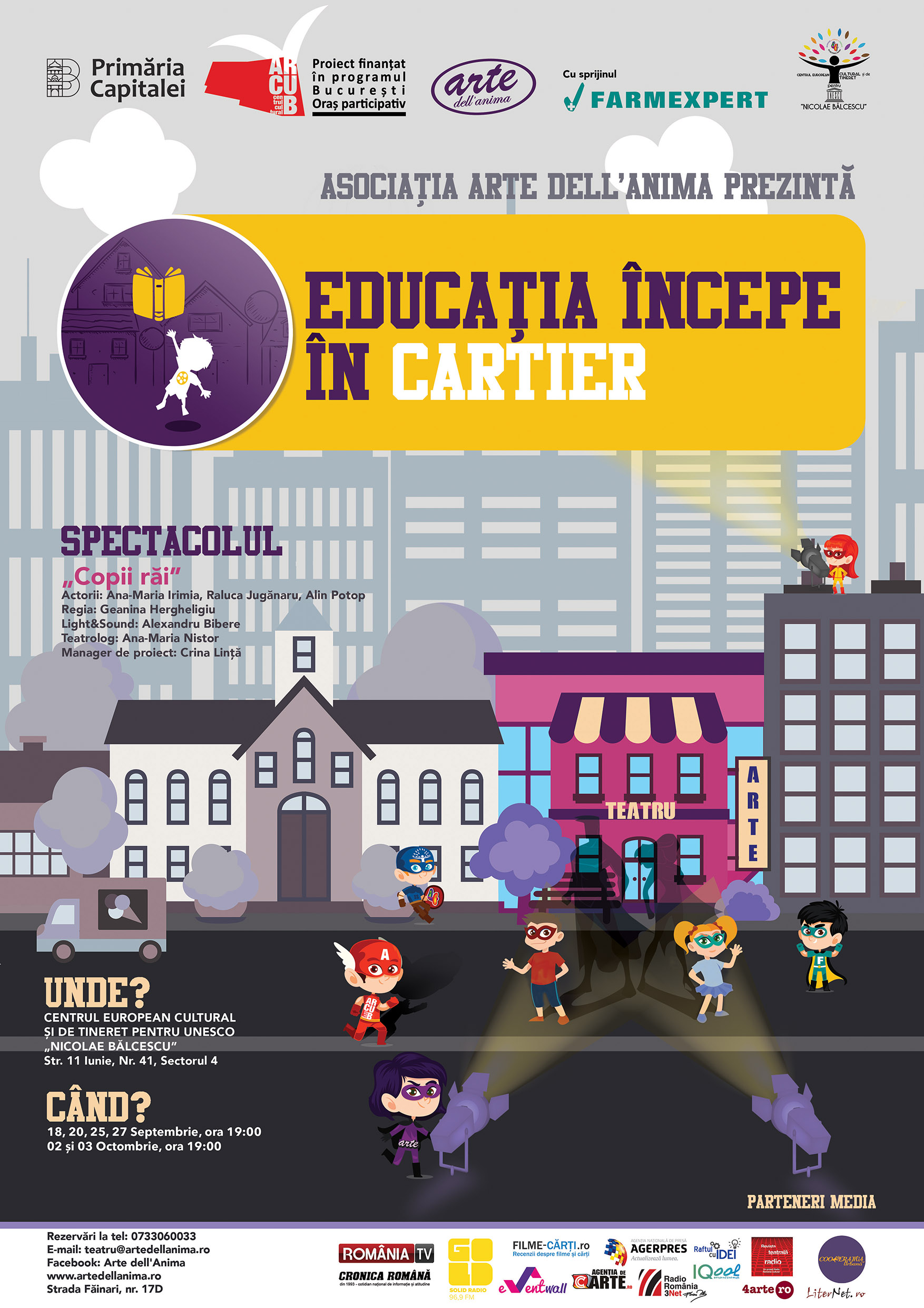 In the fall of 2017, Arte dell’Anima Association organised the social project “Education starts in the neighborhood”, financed by Bucharest City Hall through ARCUB, the Centre of Cultural Projects of Bucharest, during the program “Bucharest- City of Participation 2017”. There was a free entry, based on reservations only.